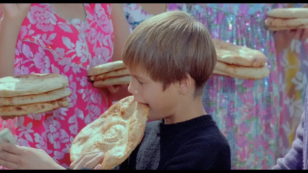 最后,男孩指挥着锅碗瓢盆等家用器具以及tar、热瓦普等传统民间乐器共同演奏了一曲具有异域风情的贝多芬《c小调第五交响曲》,极具超现实色彩。诗意扶摇直上,终在这一刻触及了意境的巅峰,情绪饱满得无可复加。