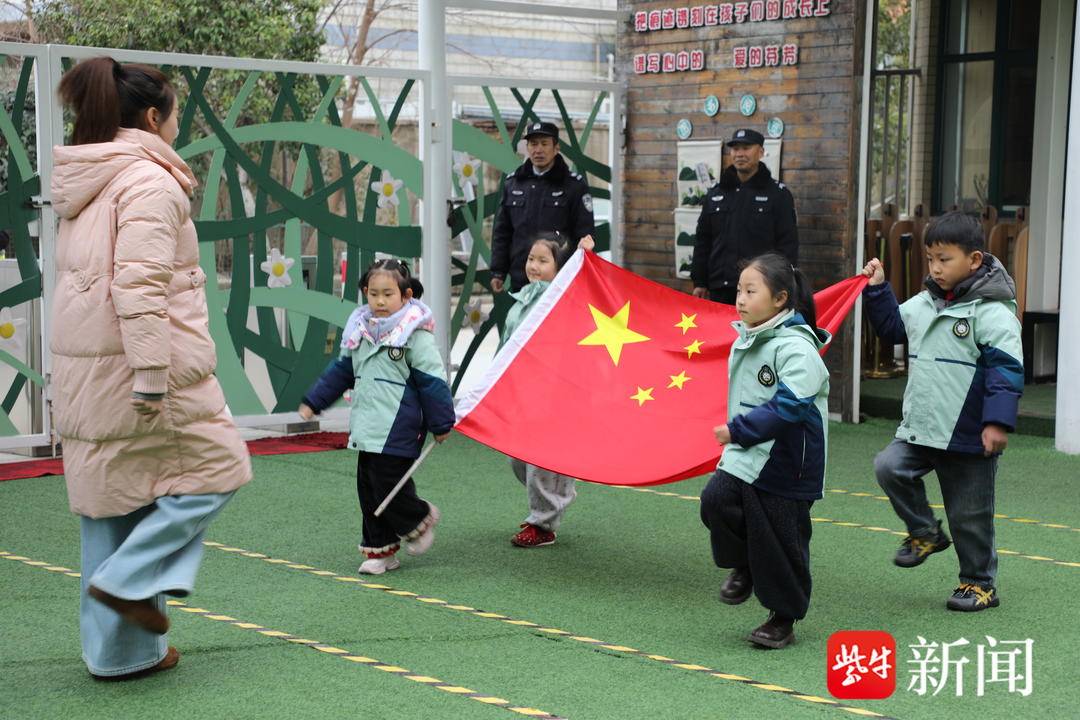 公办学校热火朝天,民办学校也不甘寂寞。射阳县小星星幼儿园大班开学典礼,升国旗、传状元笔、抽盲盒、贴福画, 让全体幼儿在情景互动中,认真尝试、互相合作,在趣味体验中懂得遵守规则、保护自己,在欢声笑语中锻炼动手能力,感受集体游戏的快乐,体验满满的仪式感。“今天我早早就醒了,催着妈妈快点送我来幼儿园,我想和好朋友一起游戏,想吃幼儿园的炒肉丝。”射阳县小星星幼儿园幼儿陈旭稚声稚气地说。