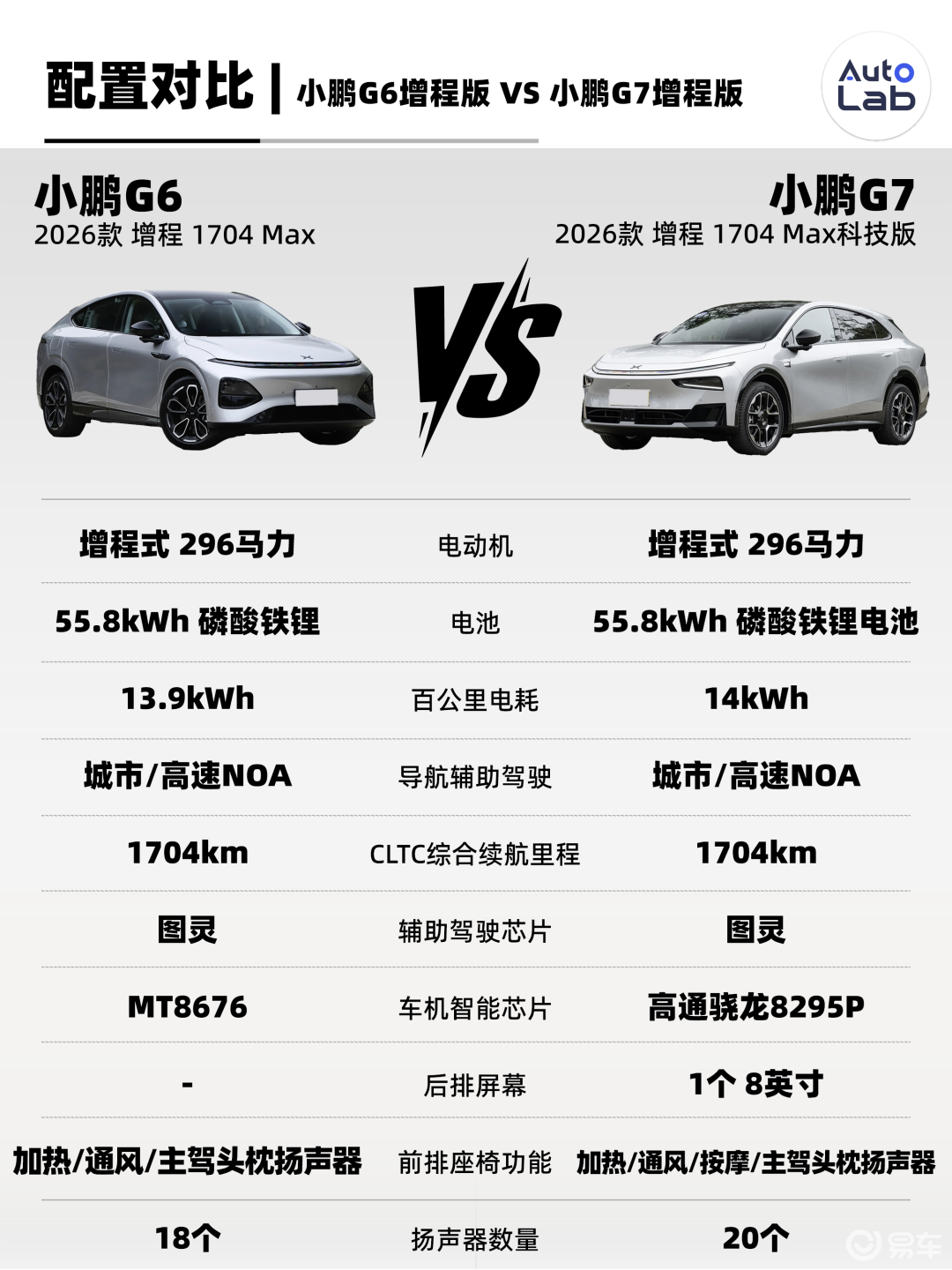 它的综合续航里程和纯电续航里程与G7超级增程一致,分别是1704km和430km。