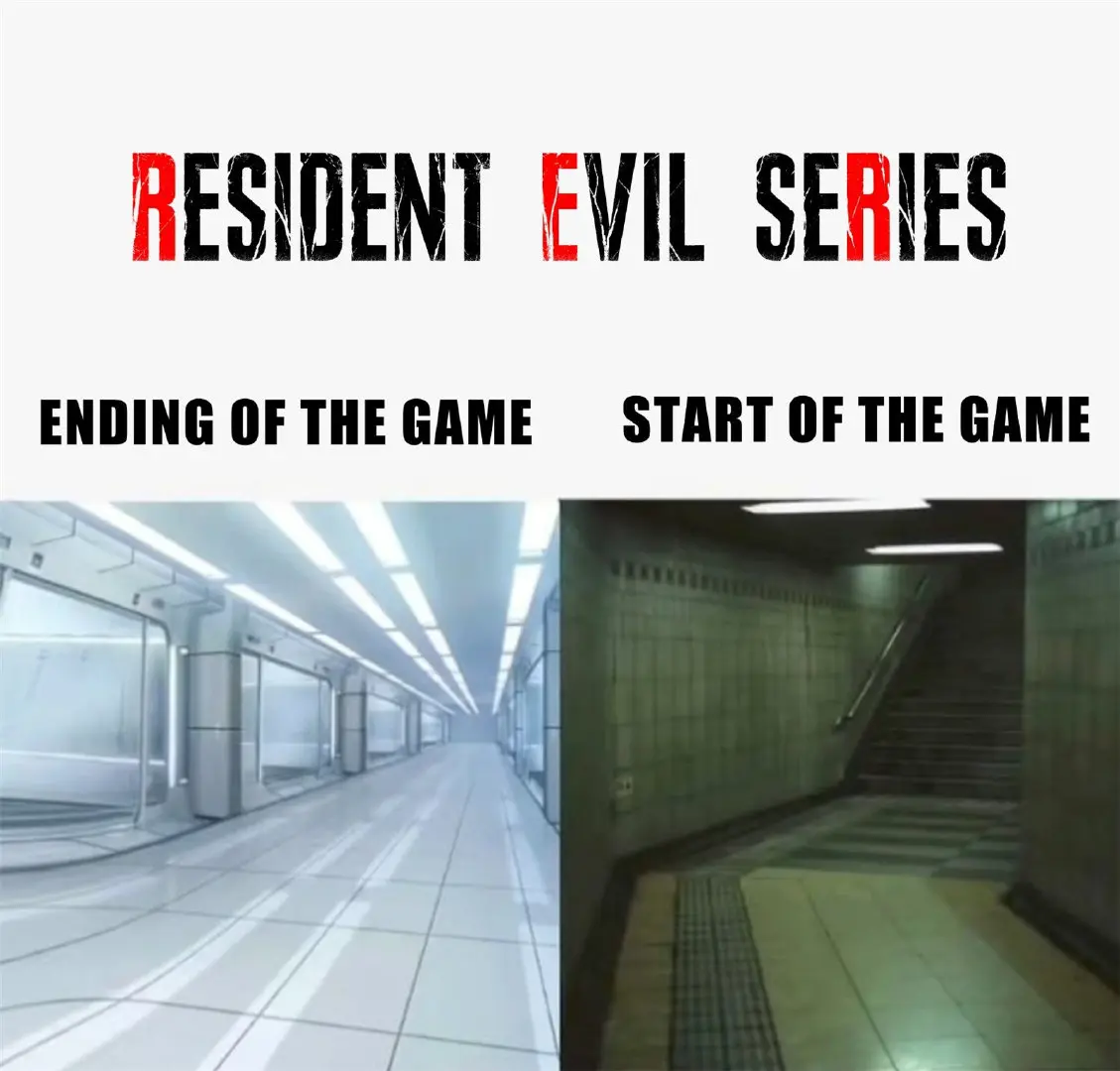 这套延续了多年的套路模板近期成为了玩家们调侃的热门话题,大家纷纷吐槽浣熊市(以及系列中其他城市)的城市规划实在“离谱”,笑称地底下的秘密实验室实在多到泛滥,甚至开玩笑质疑:“当年建造下水道或地铁的工程师,难道都完全没发现这些一尘不染的纯白房间吗”?玩笑之外,其实,博士觉得这种反差感还是蛮有必要的,纯白实验室看起来明亮干净,与前期的破败环境形成了鲜明的对比,但它所营造出的“虚假的平静”,再加上实验室中伴随的未知诡异音效,以及比前期更致命的生化武器、变异实验体,往往能带来另一种层次的恐惧感——那种人为操控生命、科技失控后的冰冷恐怖,比阴暗环境带来的压迫感更让人不寒而栗。