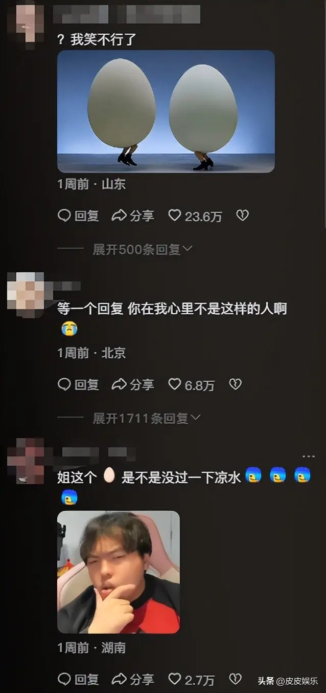 觉得剥个鸡蛋跟演唱会完全不搭边,并且还有网友特别搞笑的提示她但应该是没过凉水,整个蛋都被剥碎了。