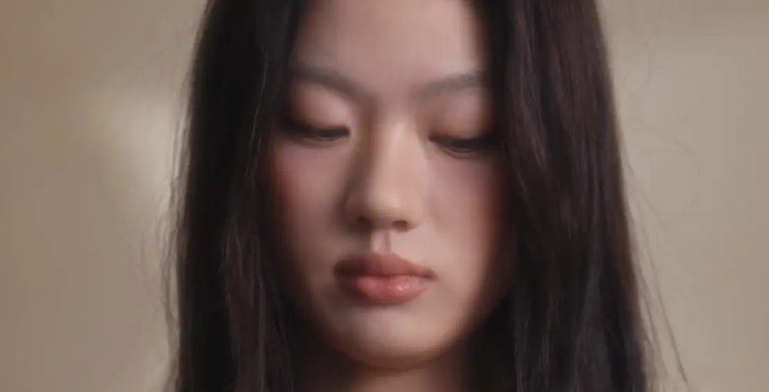 头发披散着脸上还化着淡淡的妆,眼神中还带着一些小调皮,镜头随着她的脸缓缓下移,就见她手上拿着一颗鸡蛋。