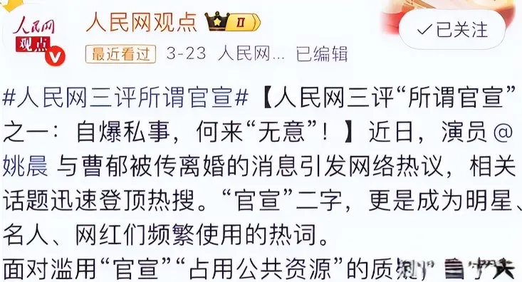 到后面也是人民网出来表示,“官宣”这个词不能用在艺人身上,成为他们恋情的一些流量词,