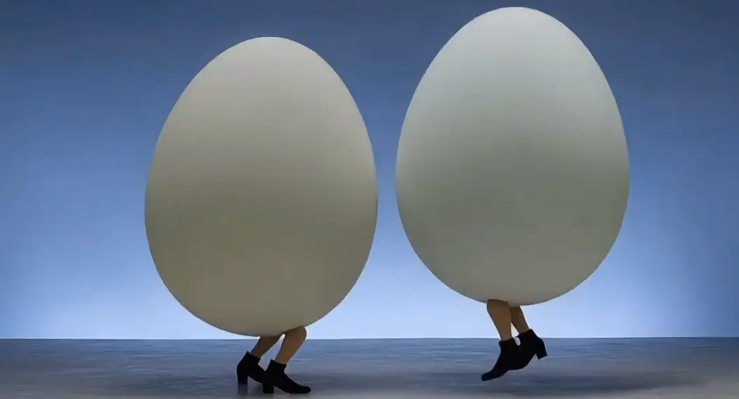 两个穿着鸡蛋玩偶服的人撞来撞去,撞完之后单依纯拿着勺子把蛋壳给敲破,整个镜头一边非常梦幻的切换,一边拍摄她手中的鸡蛋。