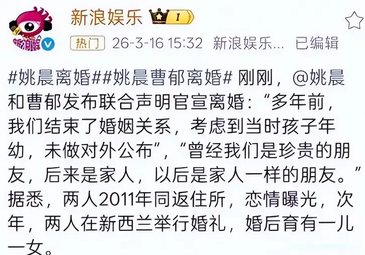 第三位就是姚晨,前段时间他在网上发布了自己离婚的消息瞬间炸了锅,真是怎么也没想到,如今离二婚她又一次选择了离婚。