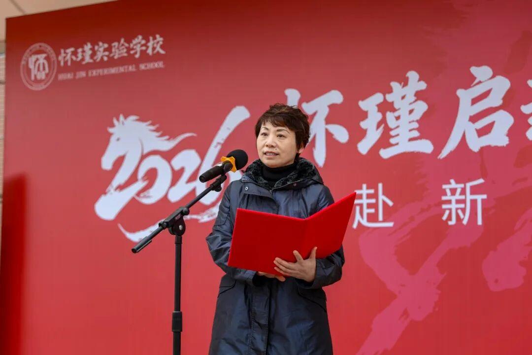 校长辛吉荣在致辞中表示,过往一学期的闪光瞬间与家长认可是学校发展的底气,他全面分析了学校作为新建校的现状与优势,确立了“赋能强基 深化改革”的学期目标,推出“14312”发展战略,分别对师生提出期许。他希望学生们成为有责、有光、有力的怀瑾少年,希望老师们做发光育人、实干笃行的教育者,号召全体怀瑾人以龙马精神直面学期工作任务,以奋斗和实干书写学校发展新篇章。