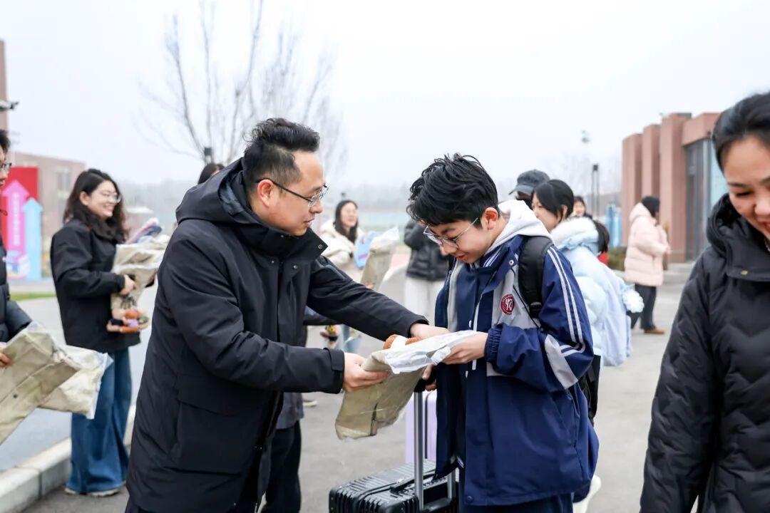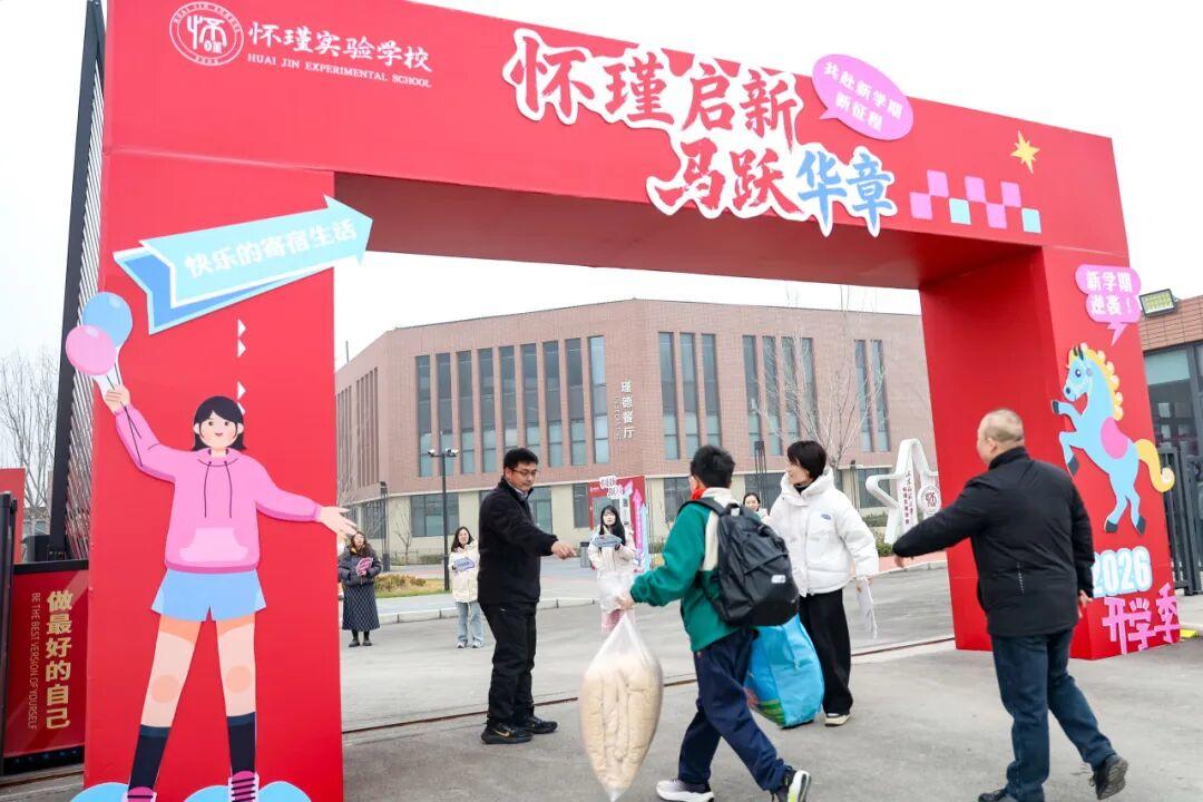 校园内暖意融融,怀瑾学子秩序井然返回校园。校门口,校领导和老师们面带微笑,用最饱满的热情迎接学子归来。学校为孩子们搭建了迎新拱门和迎宾墙,设置了专属打卡地,精心挑选了带有怀瑾元素的“开学礼”,铅笔袋、时尚帆布包、被赋予美好寓意的精美挂件,承载着学校对学子们的殷切期许。九年级家长代表为学校赠送了锦旗,表达了对孩子关怀与培养的感激之情。