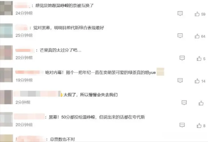 现场的观众们都看不下去了,直接当场大喊是“黑幕”,逼得芒果后台不得在播出时现场消音。