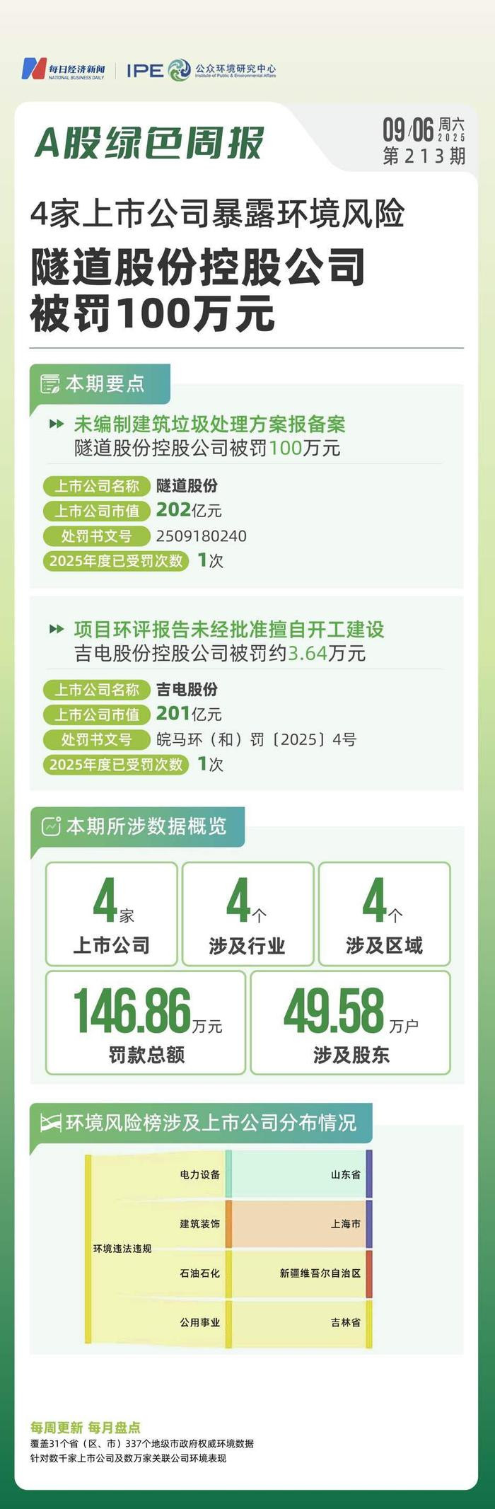 2025年9月第一周,哪些上市公司的环境保护与信披责任亮起了红灯?且看A股绿色周报第213期。